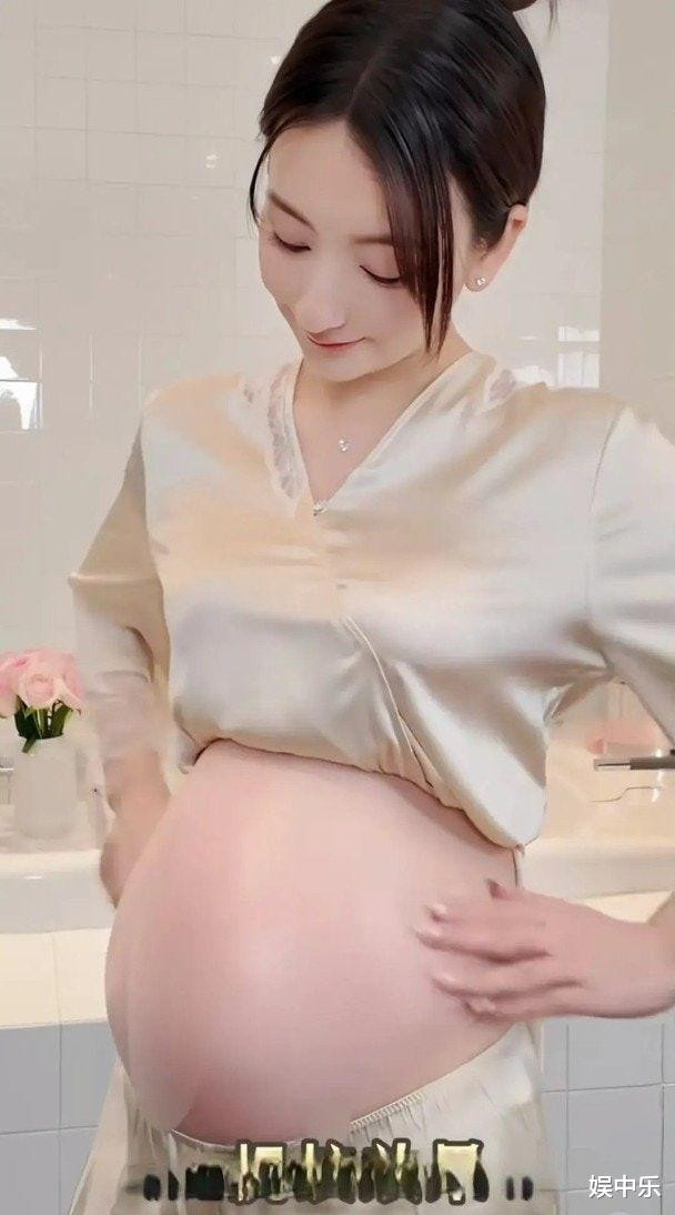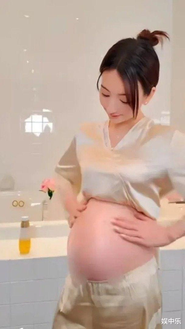 方媛怀孕八个月身穿真丝睡衣展示白皙孕肚临产在即